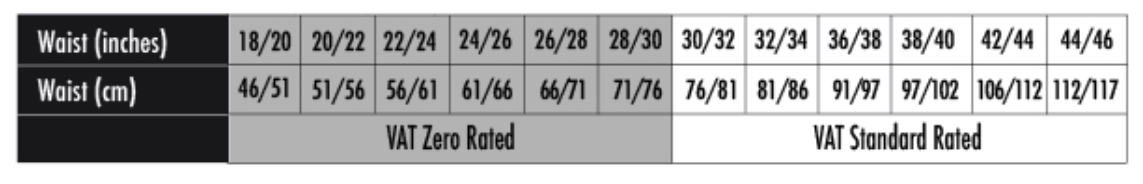 Size Waist (inches)